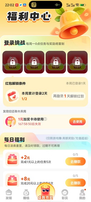 3、试玩游戏赚奖励,每个的游戏都有任务,完成任务就可以得奖励。