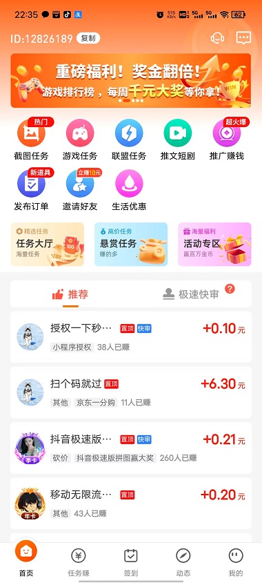 3、 无论是哪一个的任务,在每天赚点内都是可以赚到奖励的。