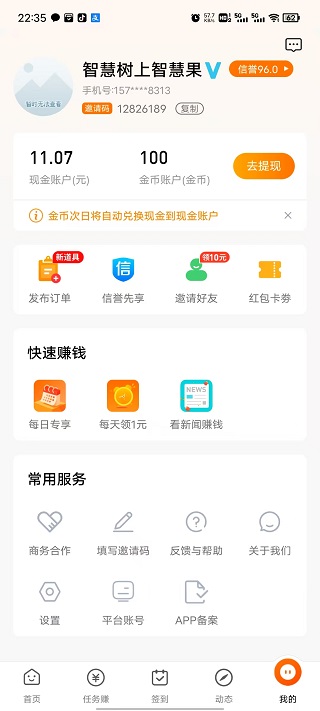 5、 做任务获得的奖励,满0.3元就可以提现,支持直接兑换到微信/支付宝。