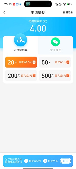 平台的奖励满20元,就可以申请提现兑换,支持微信和支付宝两种兑换方式,当天审核到账。