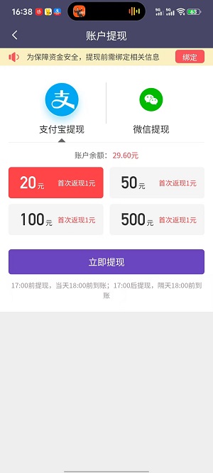 赚客的试玩任务非常多,只要你获得的奖励满20元,就可以在个人中心申请提现,支持兑换到微信或支付宝,最快可以一小时内到账。