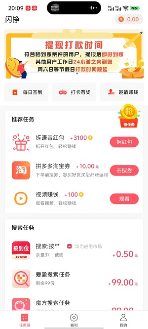 闪挣是个能手机赚零钱的试玩平台,运行的时间也比较久,赚奖励方面任务也比较的足够,十分的值得下载体验一下。