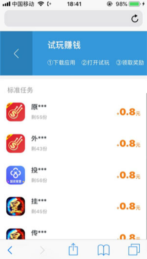3、 平均只需三分钟的完成时间,试玩奖励单价1.5元左右。