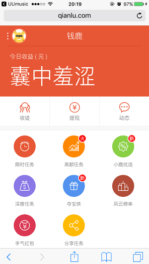 钱鹿ios试玩,是一款可以通过苹果手机试玩应用赚奖励的平台。拥有海量的用户群体,超多的试玩任务。每一个的任务都是用户可以赚得奖励的机会,并且平台是完全免费的,没有任何的套路,就可以轻松的赚上零花钱。各种的好玩应用,不仅仅是能赚奖励,还能让你体验到不一样的应用。还有邀请赚钱、深度任务等等玩法等着你,赶紧下载起来吧。