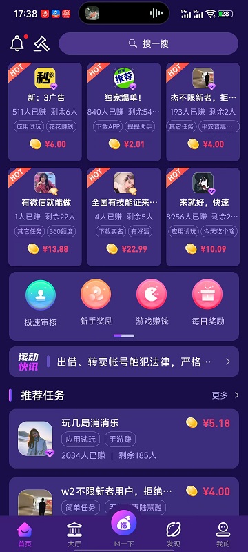 5、 每日完成一定的数量任务,还可以获得额外的红包奖励。