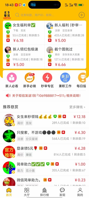 1、 APP任务多多,首次注册用户享专属新手任务。