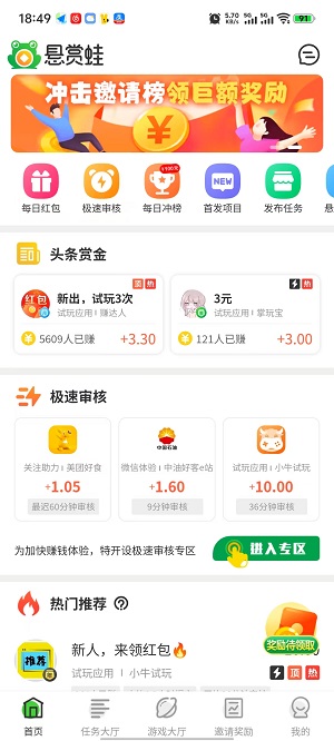 2、 海量的任务,每天都会进行更新,总有一款的任务适合你。