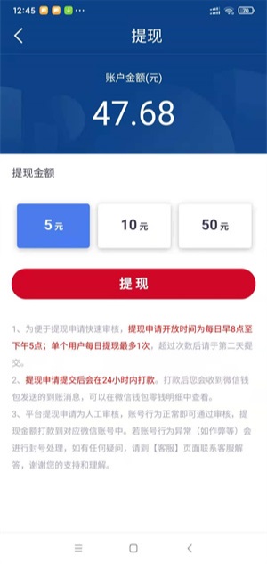 在海赚资讯获得的奖励满10元,你就可以申请提现,可以直接兑换到微信,门槛超低,24小时内到账。