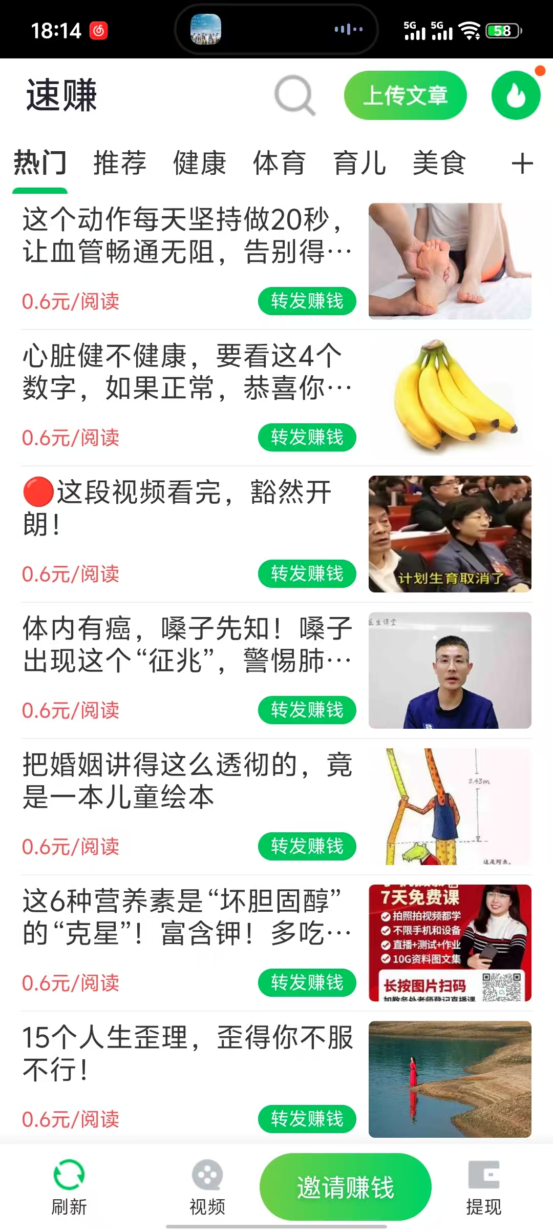 2、 阅读资讯文章,分享文章每次被阅读单价0.6元。