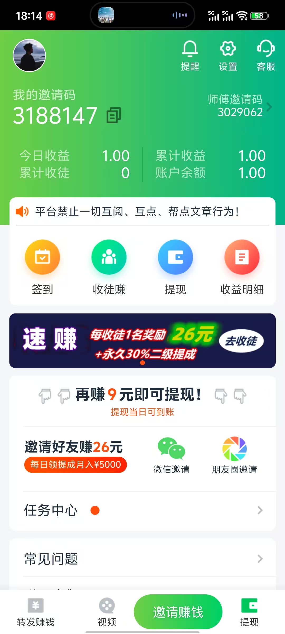 4、 推广赚钱,每邀请一位有效好友一起,最高可获得20元红包。